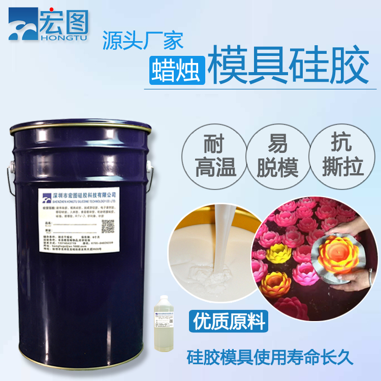 蠟燭模具硅膠屬于液體硅膠中一種,由AB雙組份構成,即A組分為硅膠,B組分為固化劑。該產品有加成型和縮合型兩種類型,加成型模具硅膠屬于環保級硅膠,硅膠與固化劑之間配比為1:1;縮合型硅膠為工業級硅膠,硅膠與固化劑之間比例為100:2或100:2.5。既可以室溫固化,也可以加溫固化成型。