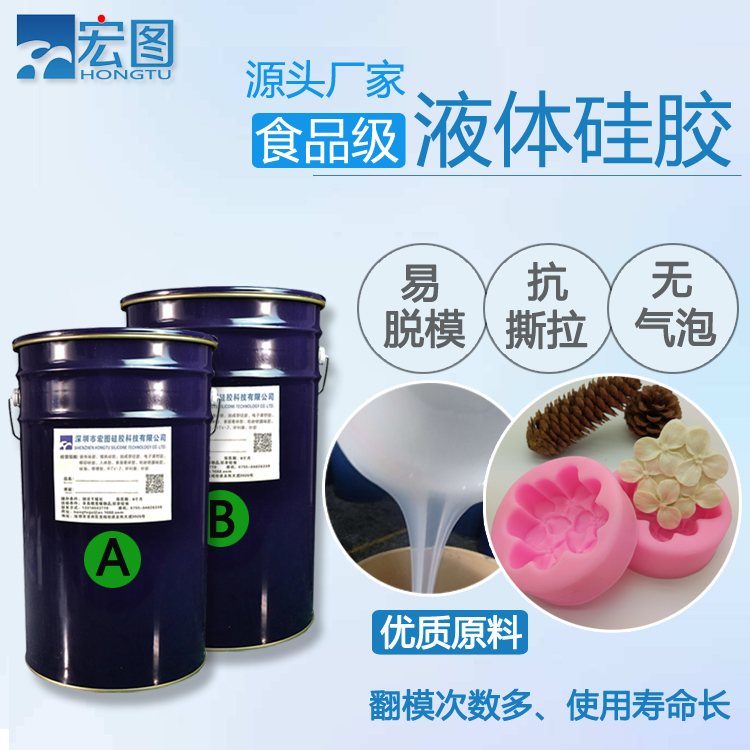 食品級液體硅膠是一種加成型雙組份液體硅膠,將AB雙組份混合攪拌均勻后,經(jīng)真空脫泡后即可澆灌。可室溫固化也可以加溫固化,室溫(28度)30分鐘操作時間,2-3小時完全固化;加溫60-120度,可在數(shù)十分鐘內(nèi)完全固化。